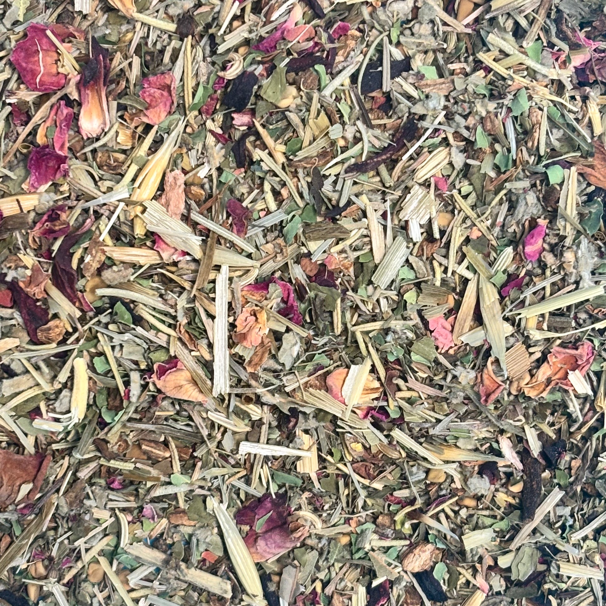 Rosemary, Rose Petals, Marshmallow Leaf, Oatstraw, Horsetail, Hibiscus, Fennel Seed, Burdock, Fenugreek Seed, Fenugreek Leaf, Peppermint, Moringa, Neem